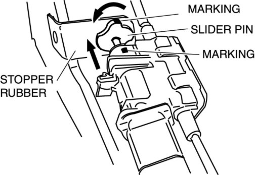 8. Pull the slider pin outward until it contacts the brake pedal stopper rubber and rotate the slider pin to lock.
