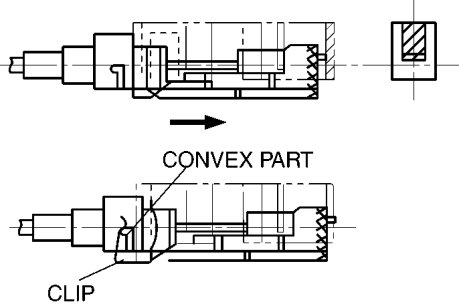 17. Slide the outer casing to the key cylinder, and insert the clip over the convex part of the outer casing.