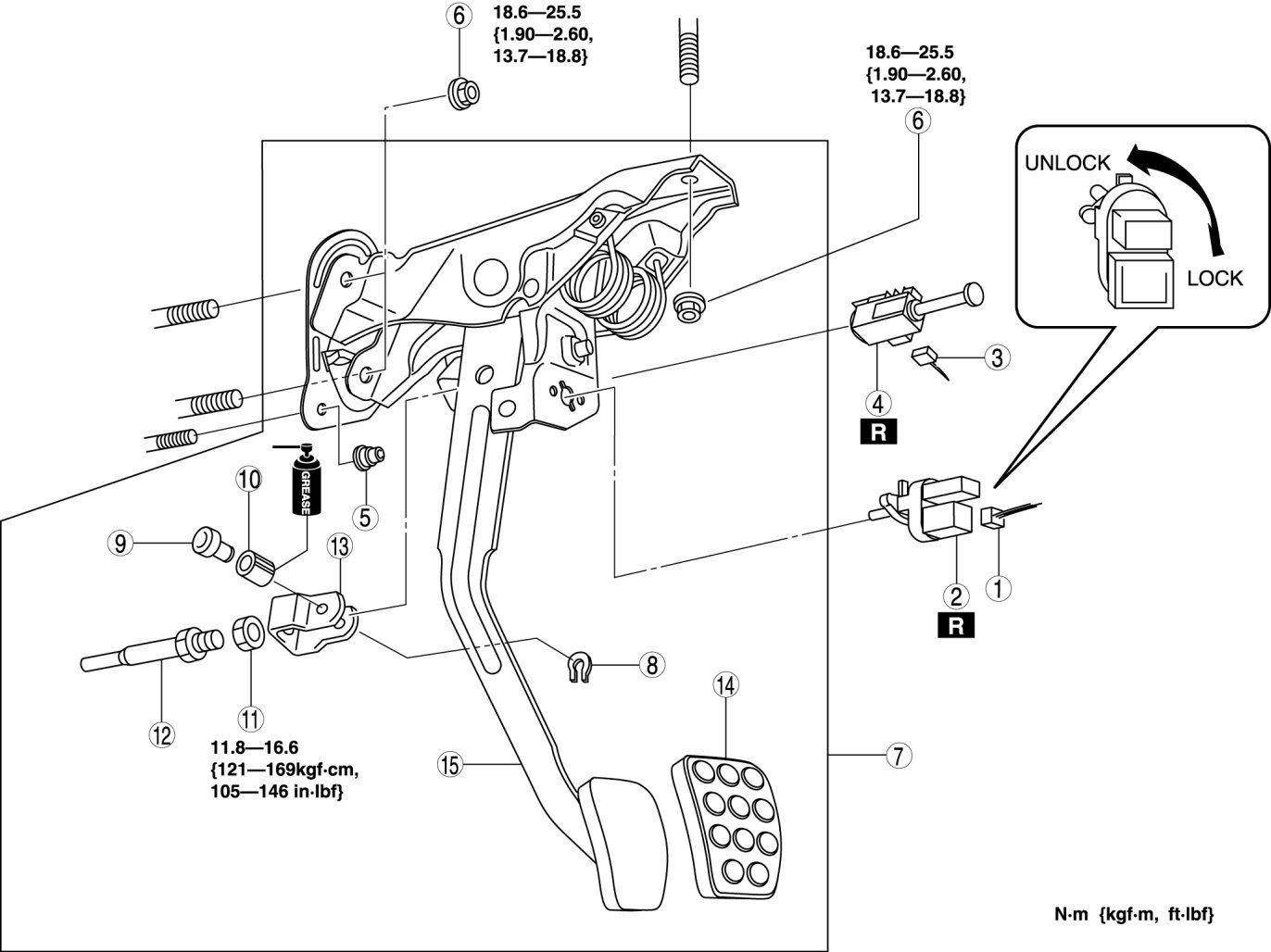 - 18.6-25.5 Nm {1.90-2.60 kgf-m, 13.7-18.8 ft-lbf}