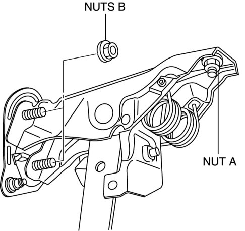 1. Install the clutch pedal component, and then temporarily tighten the nut A.