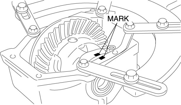 2. Put left and right identification marks on the removed adjustment shims and side bearing outer races.
