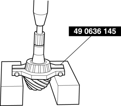 - The drive pinion could be damaged if it falls off. Support the drive pinion with your hand when removing the rear bearing.