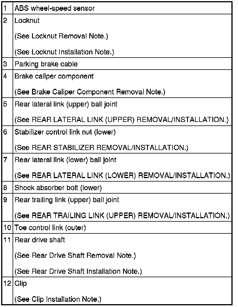 Rear Drive Shaft Removal Note