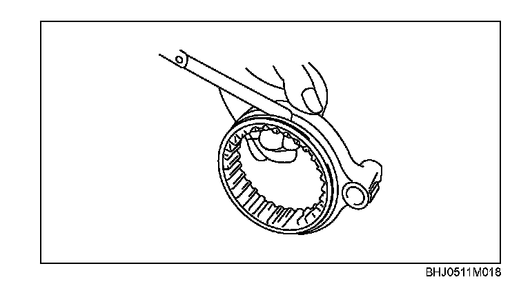 Clutch Hub Component1. Measure the clearance between each shift fork and clutch hub sleeve groove using a feeler gauge.