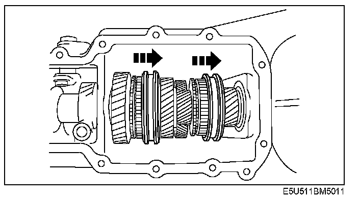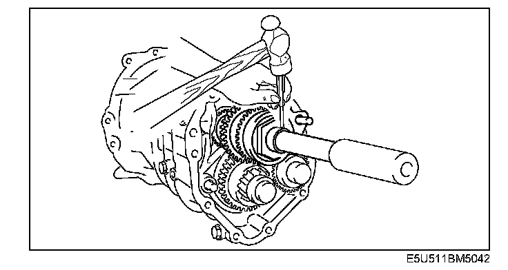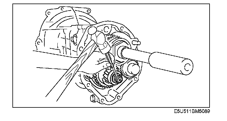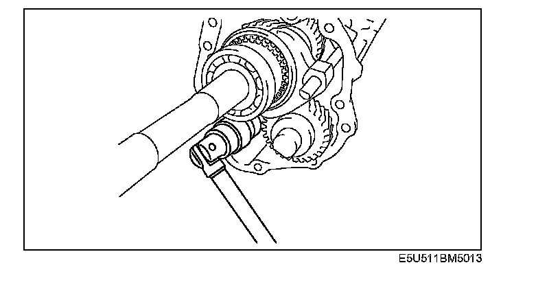 Mainshaft Rear Bearing and Countershaft Rear Bearing Locknut Assembly Note1. Slide the 5th/6th and 1st/2nd clutch hub sleeves to lock the transmission into 5th and 2nd gears.