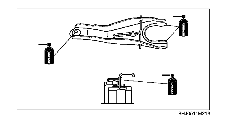Apply specified grease to the areas shown in the figure.
