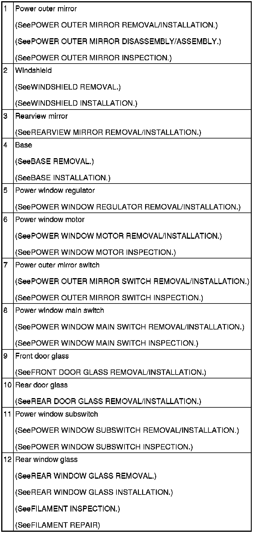 GLASS/WINDOWS/MIRRORS LOCATION INDEX