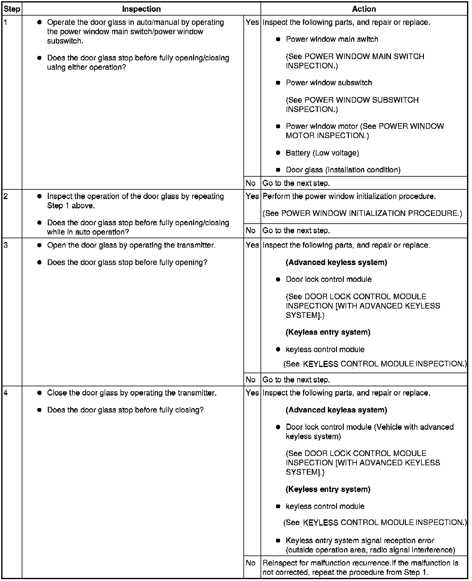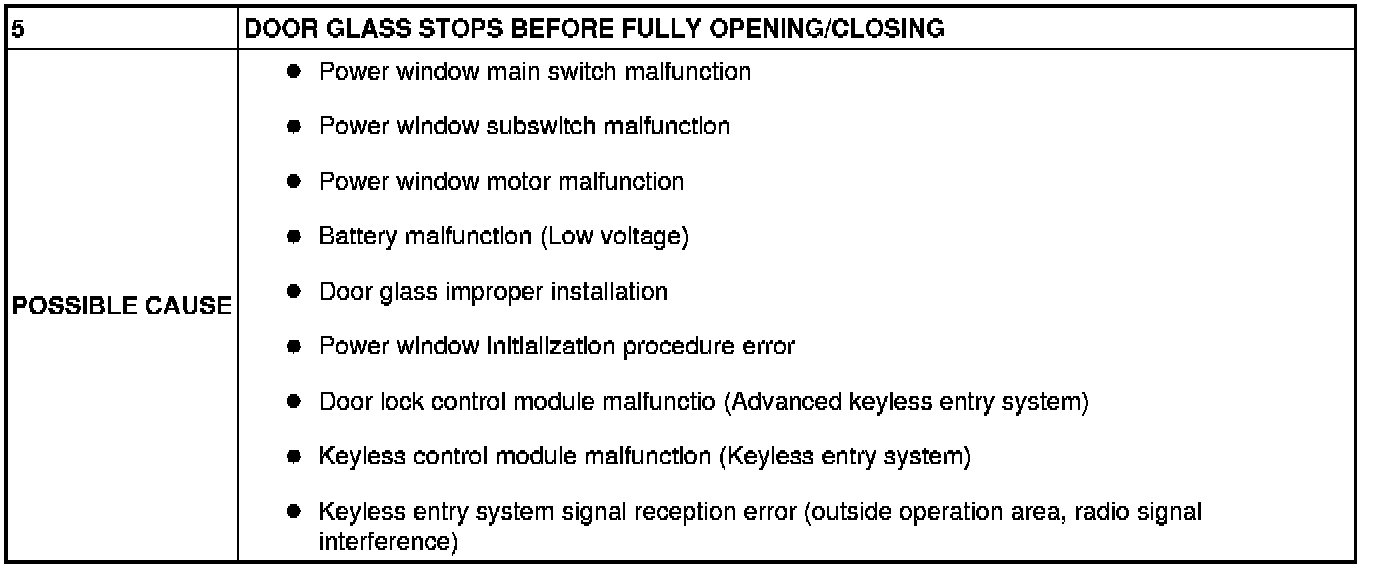 No.5 DOOR GLASS STOPS BEFORE FULLY OPENING/CLOSING [EXTERIOR OPEN/CLOSE FUNCTION]