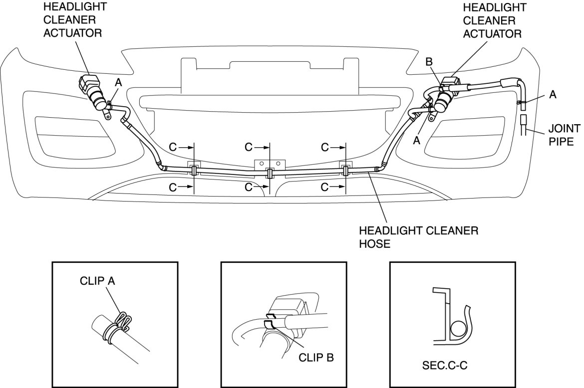 HEADLIGHT CLEANER HOSE REMOVAL/INSTALLATION