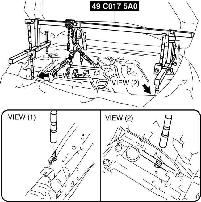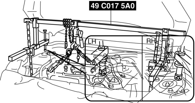 c. As shown in the figure, set the rear shafts of the SST to the left and right shock absorber bolts.