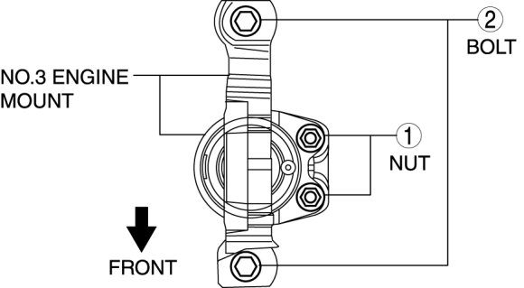 3. Tighten the No.3 engine mount installation bolts and nuts in the order shown in the figure.
