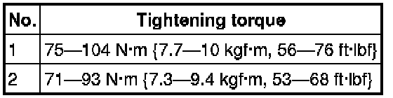 - Step 1: 96-104 Nm {9.8-10 kgf-m, 71-76 ft-lbf}