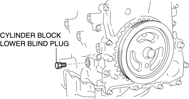 1. Rotate the crankshaft in the direction of the engine rotation and remove the cylinder block lower blind plug when the No. 1 cylinder is at the point prior to top dead center (TDC) of compression, then install the SST.