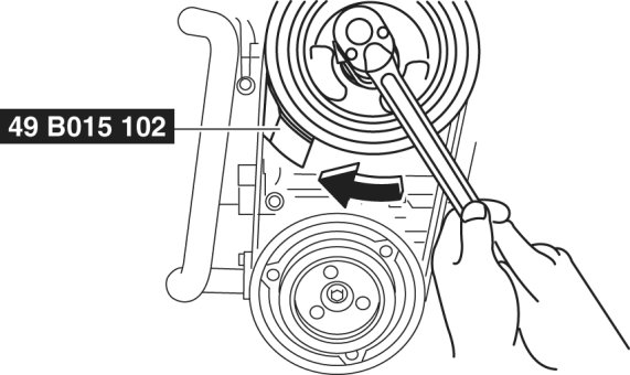 4. Rotate the crankshaft pulley clockwise using a wrench and install the A/C drive belt.