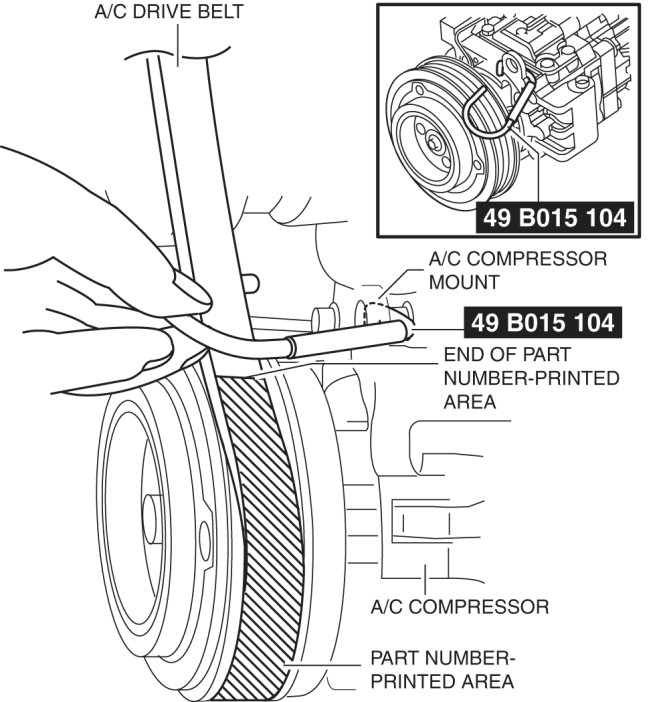 - If the A/C belt is not seated properly, push/pull the belt with a suitable tool in the direction where it would be seated properly and then rotate the crank pulley clockwise until the belt is correctly seated. If this does not correct the problem, remove the belt and install it again.