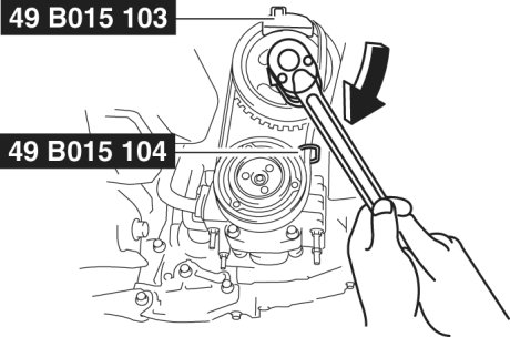 - Do not turn the crankshaft pulley counter clockwise, otherwise the crankshaft pulley bolt could loosen and the timing could change causing engine damage.