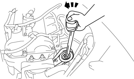 2. Turn the center of the auto tensioner pulley counterclockwise to release tension to the drive belt tension.
