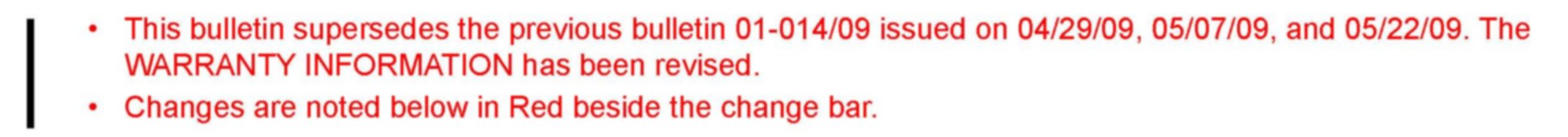 ^ Please be aware that PCM calibration part numbers and file names listed in any Service Bulletin may change due to future releases of IDS software, and additional revisions made to those calibrations for service related concerns.