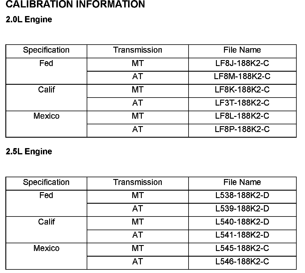 ^ When reprogramming a PCM, IDS will always display the latest calibration P/N available for that vehicle. If any calibration has been revised/updated to contain new information for a new service concern/issue, it will also contain all previously released calibrations.