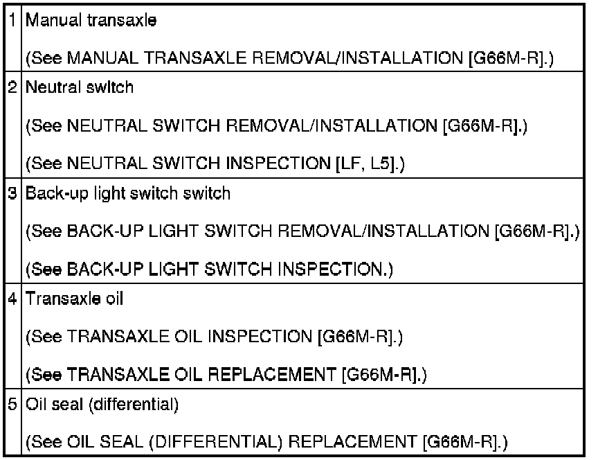 MANUAL TRANSAXLE LOCATION INDEX [G66M-R]