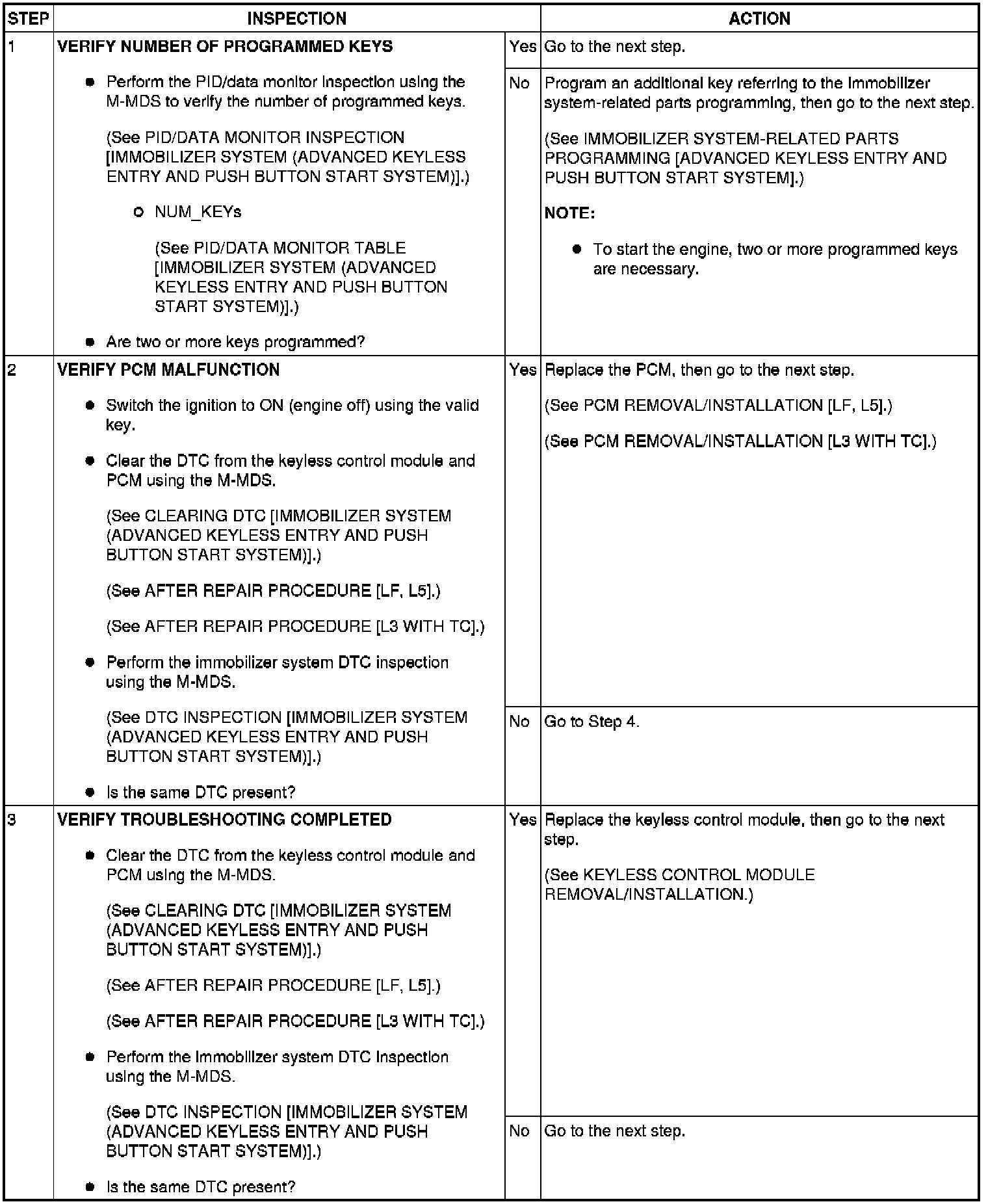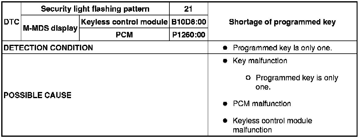 SECURITY LIGHT: 21, DTC: B10D8:00/P1260:00 [IMMOBILIZER SYSTEM (ADVANCED KEYLESS ENTRY AND PUSH BUTTON START SYSTEM)]