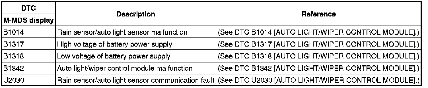 DTC TABLE [AUTO LIGHT/WIPER CONTROL MODULE]