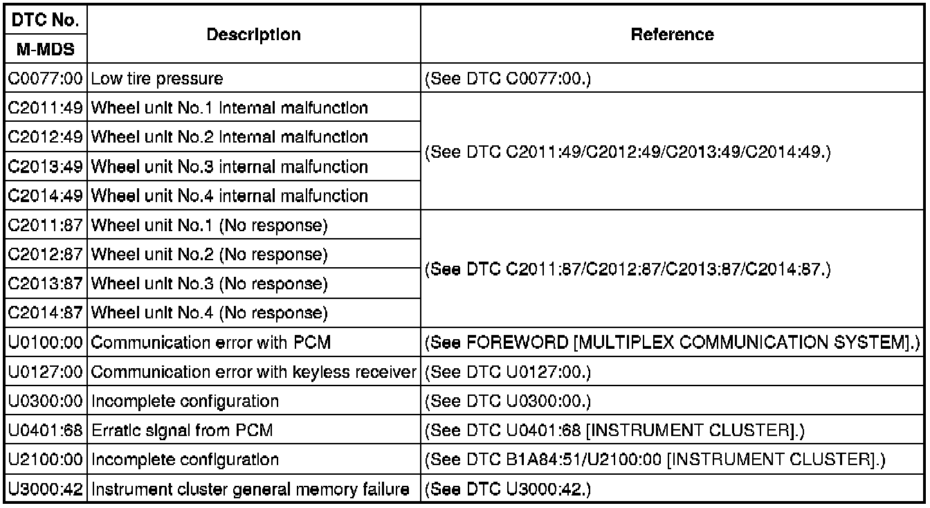 DTC Table [Tire Pressure Monitoring System (TPMS) on-Board Diagnosis]