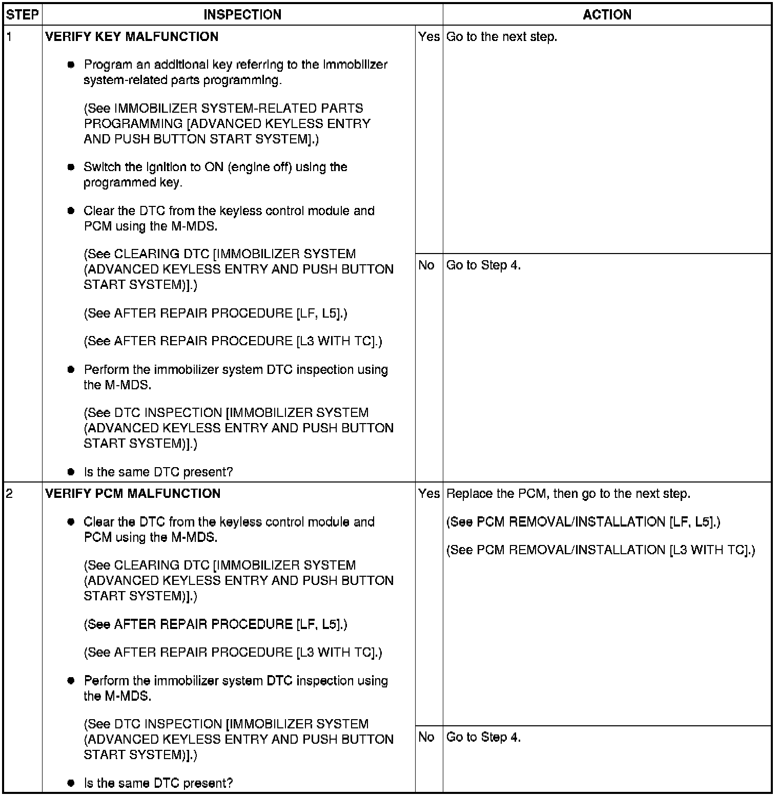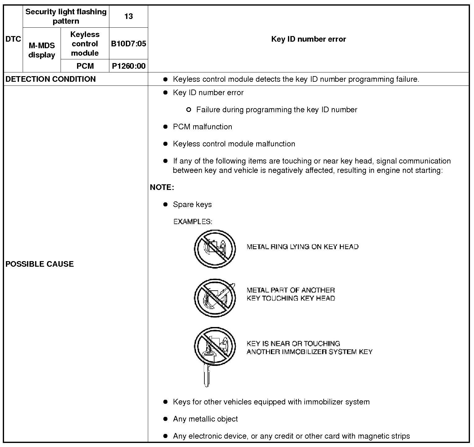 SECURITY LIGHT: 13, DTC: B10D7:05/P1260:00 [IMMOBILIZER SYSTEM (ADVANCED KEYLESS ENTRY AND PUSH BUTTON START SYSTEM)]