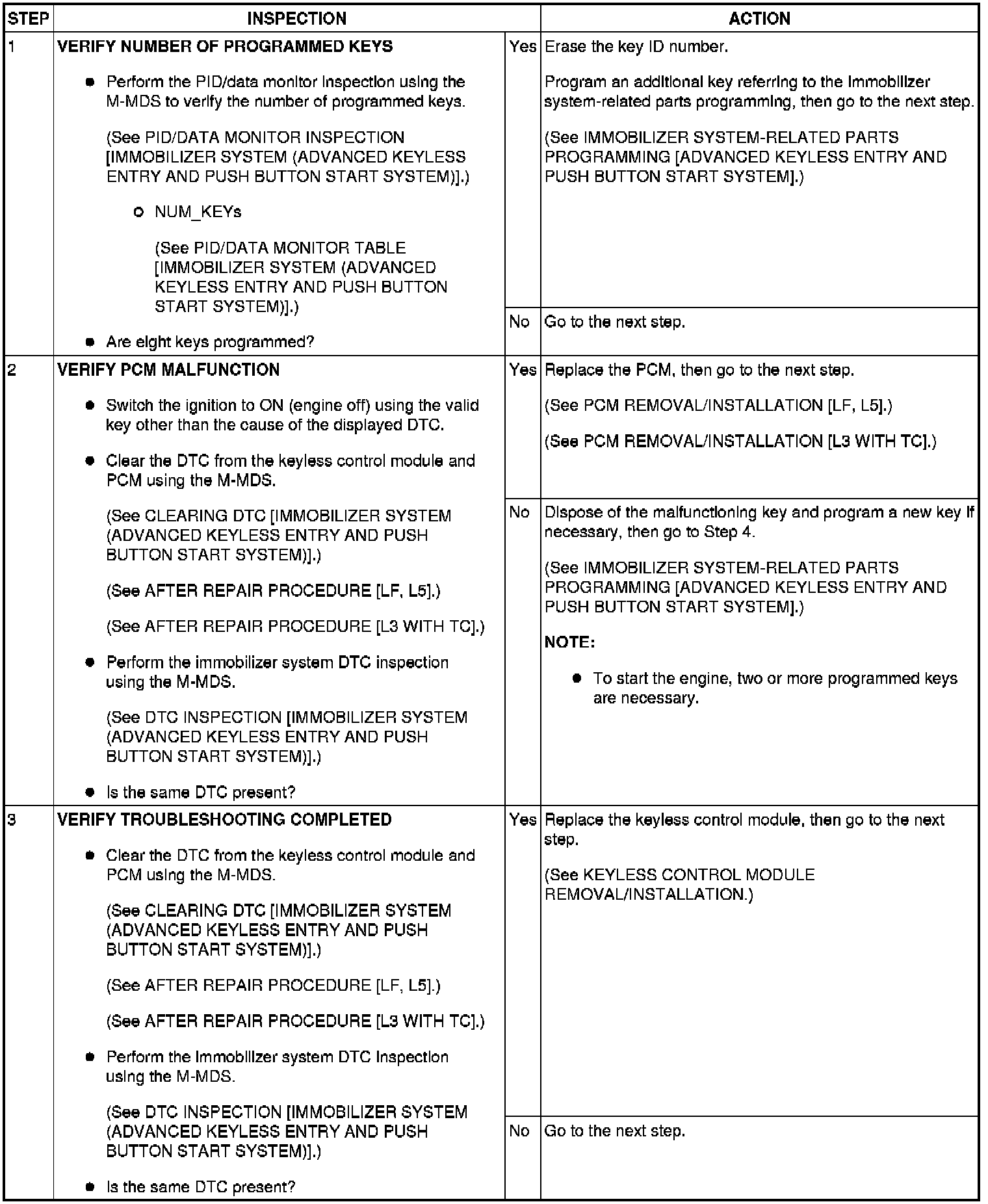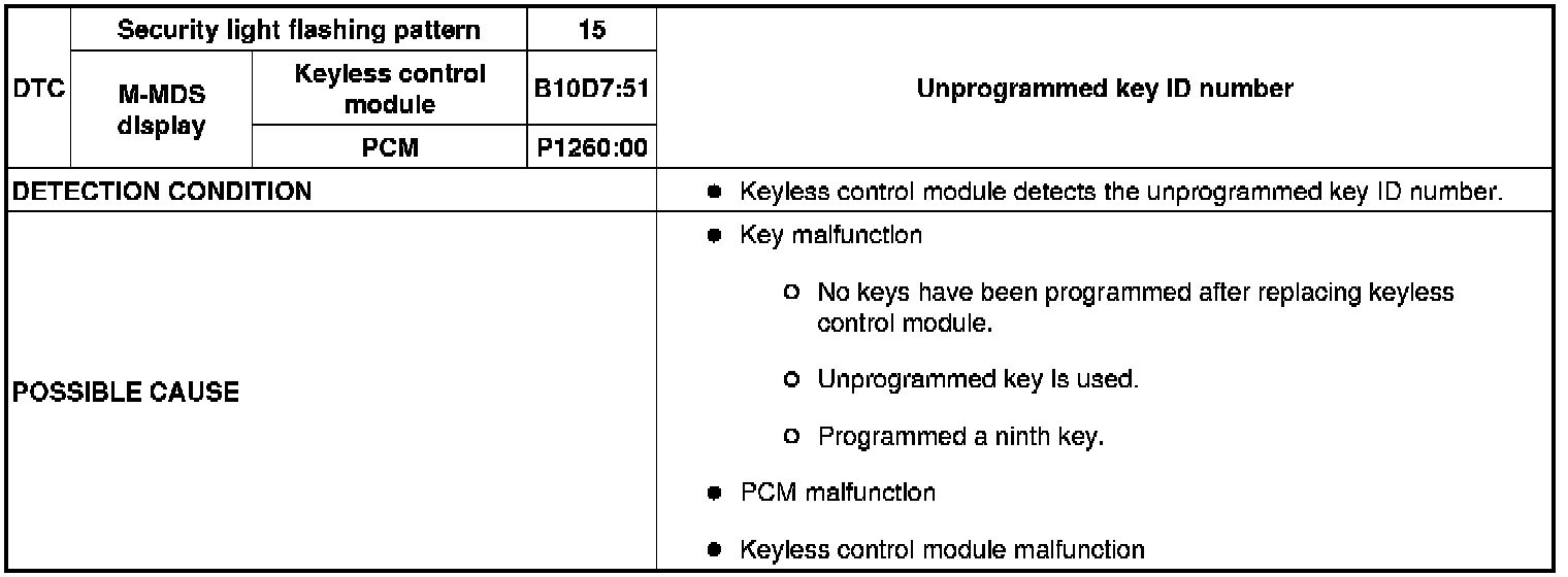 SECURITY LIGHT: 15, DTC: B10D7:51/P1260:00 [IMMOBILIZER SYSTEM (ADVANCED KEYLESS ENTRY AND PUSH BUTTON START SYSTEM)]