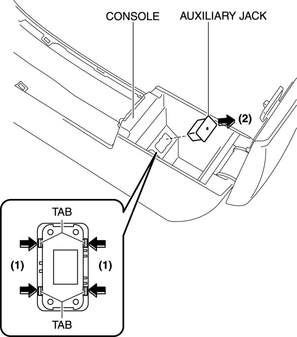 3. Remove the auxiliary jack in the direction of the arrow (2) shown in the figure while pressing the auxiliary jack tabs in the direction of the arrow (1).