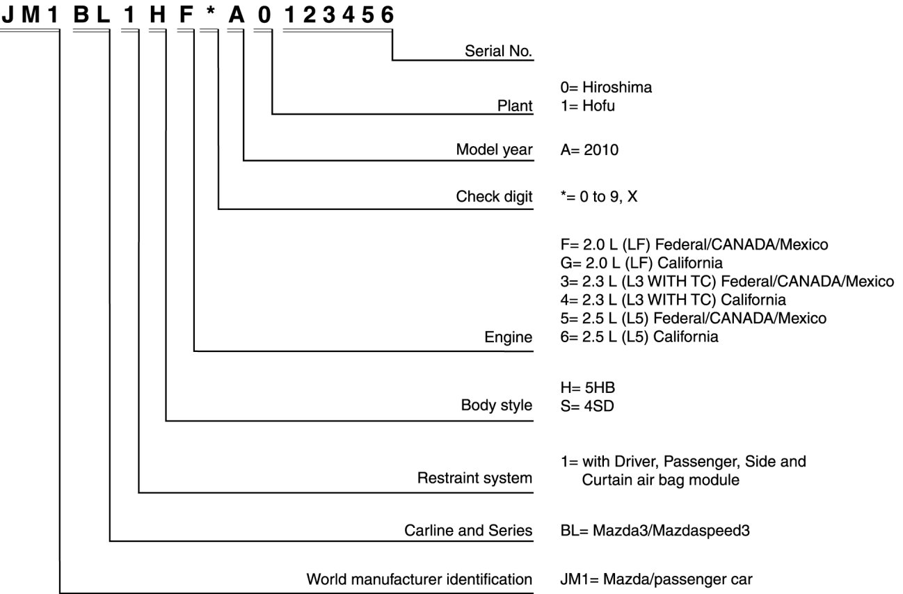 VEHICLE IDENTIFICATION NUMBER (VIN) CODE
