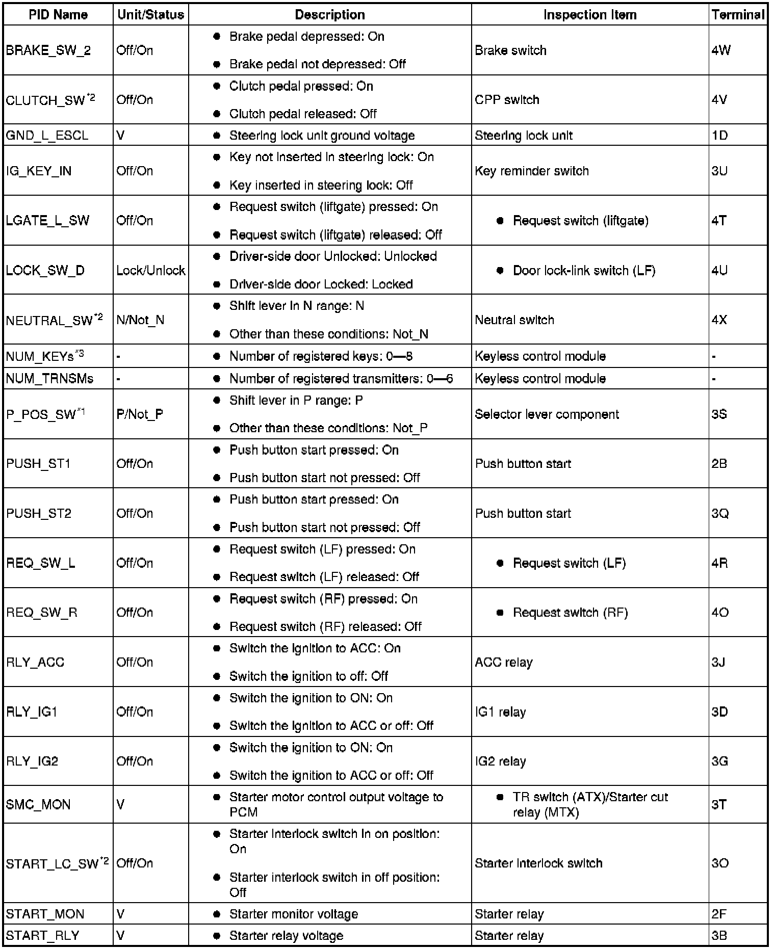 PID/DATA Monitor Table (Part 2):