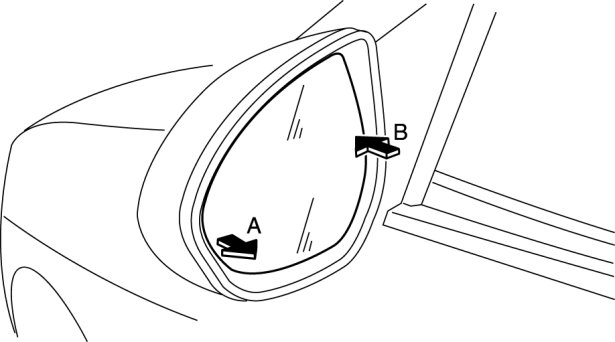 1. Press area B of the mirror glass so that area A moves outward.