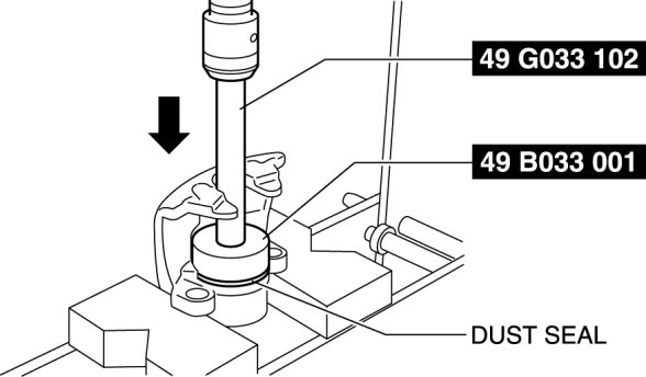1. Assemble a new dust seal to the caliper using the SSTs and a press with a press-in force of 834 N {85 kgf, 187 in-lbf}.