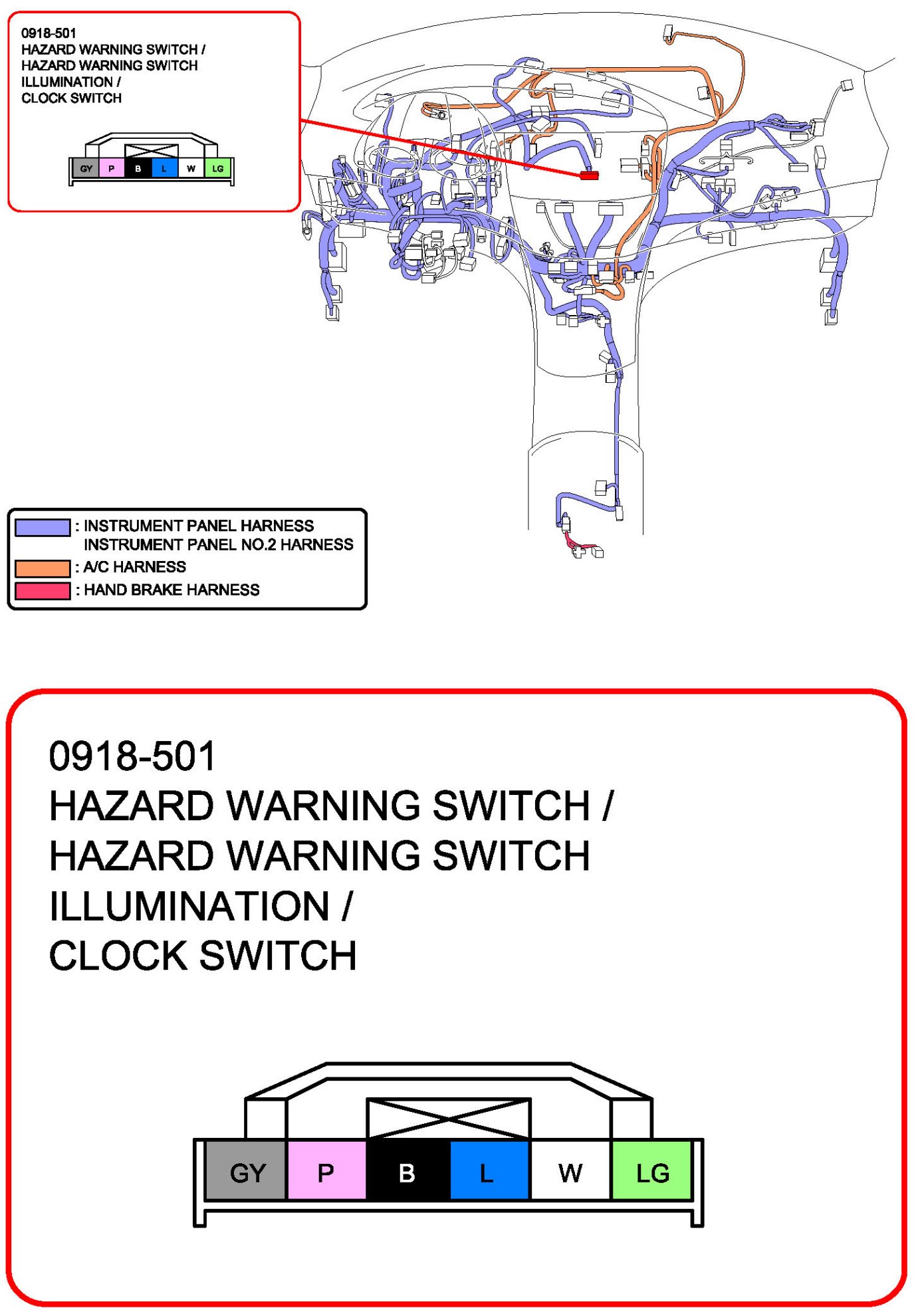 Hazard Warning Switch / Hazard Warning Switch Illumination / Clock Switch: