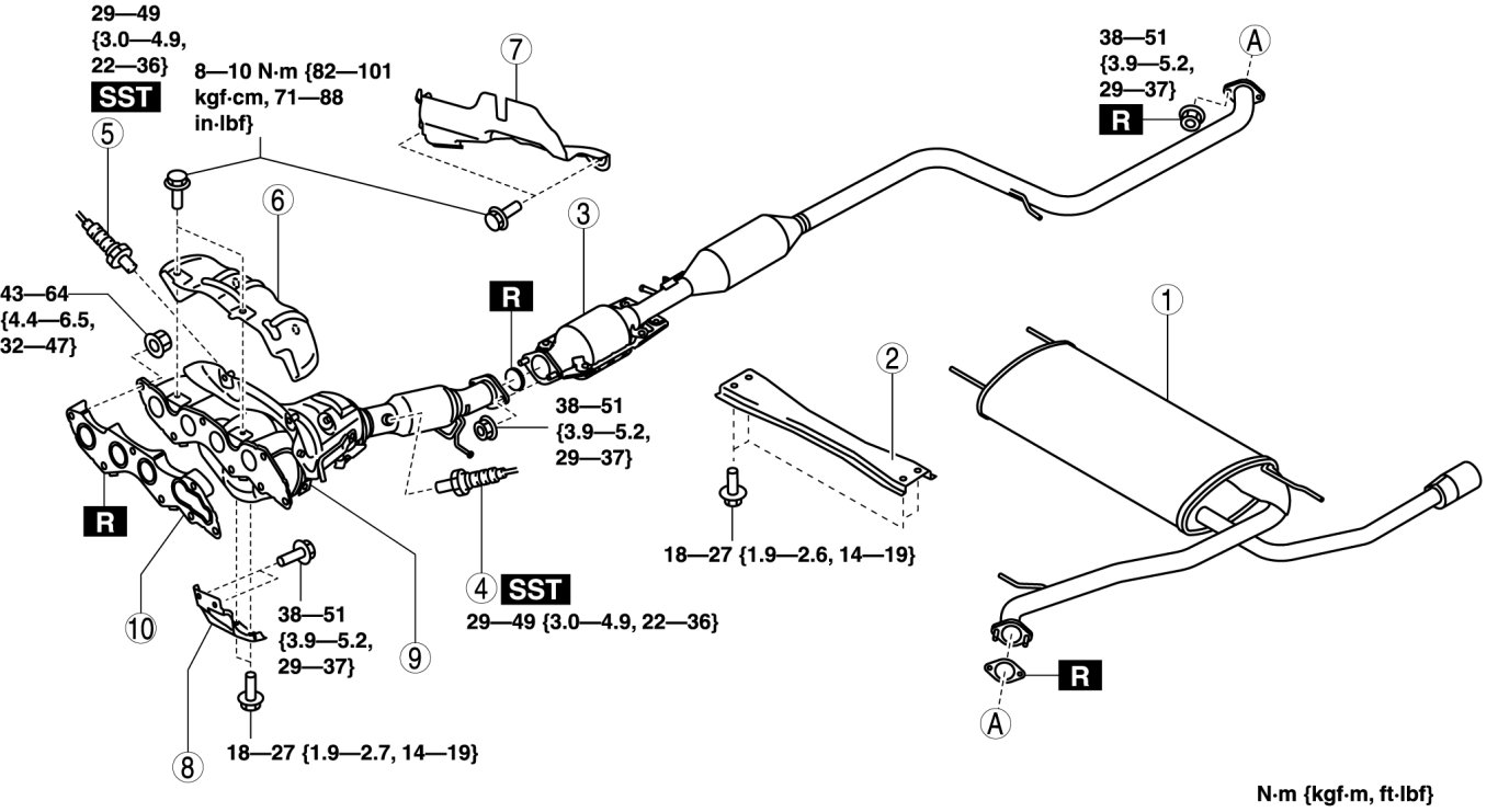 EXHAUST SYSTEM REMOVAL/INSTALLATION [LF, L5]
