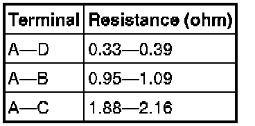 Verify that the resistance between the resistor terminals is as shown in the table.