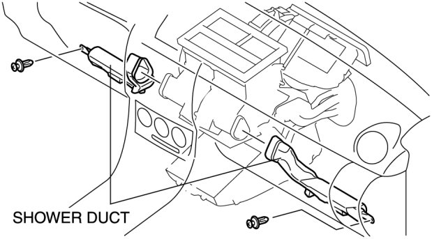 19. Remove the nuts for installing the A/C unit to the dashboard.