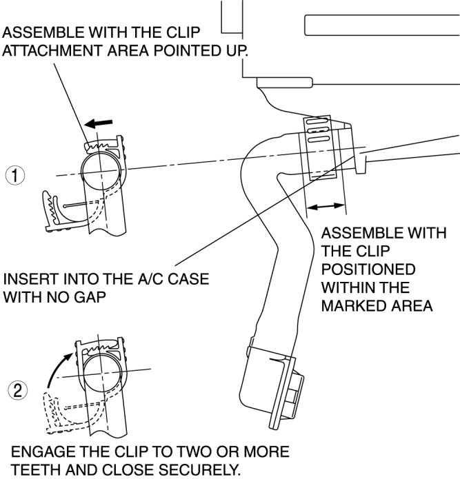 1. Insert the heater hose into the pipe of the A/C unit until a click is heard.