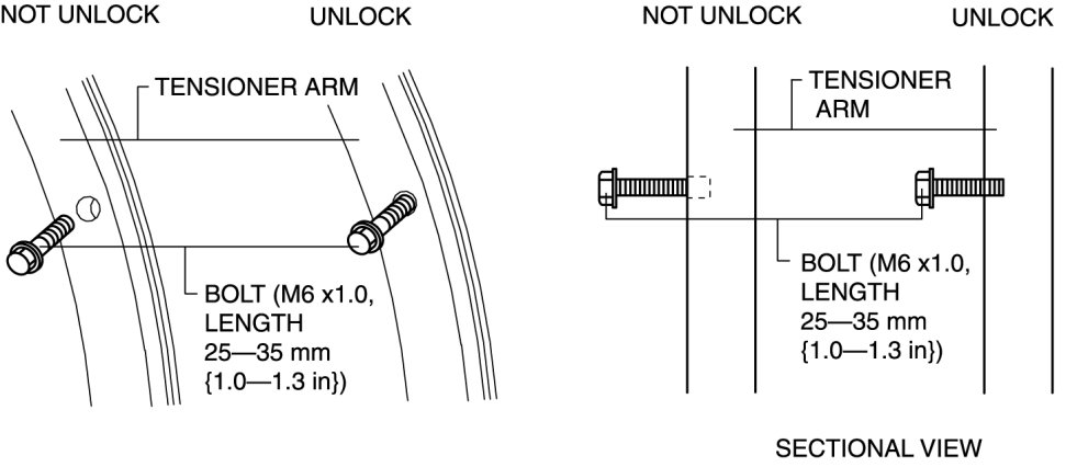 - If the tensioner arm cannot be secured, return the bolt to its original position and repeat the procedure from Step 3.