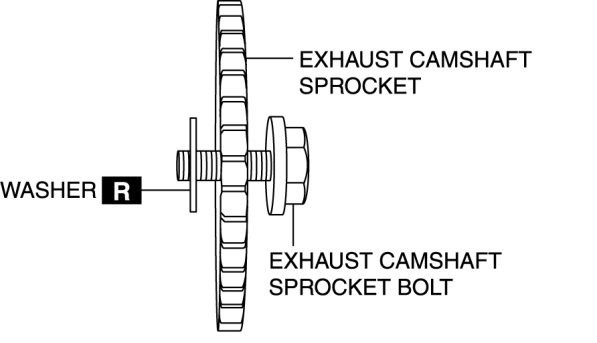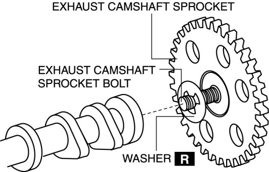 20. Remove the exhaust camshaft sprocket bolt, exhaust camshaft sprocket, and washer as a single unit.