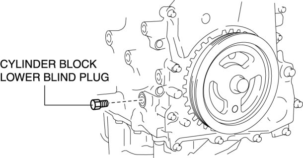 16. Remove the cylinder block lower blind plug, and install the SST.