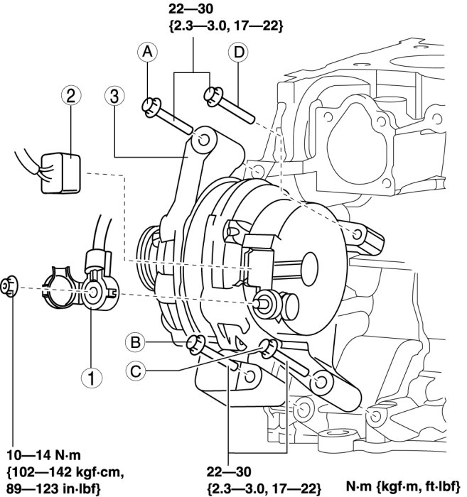 2. Securely tighten the generator installation bolts in the order of A, B, C, and D.