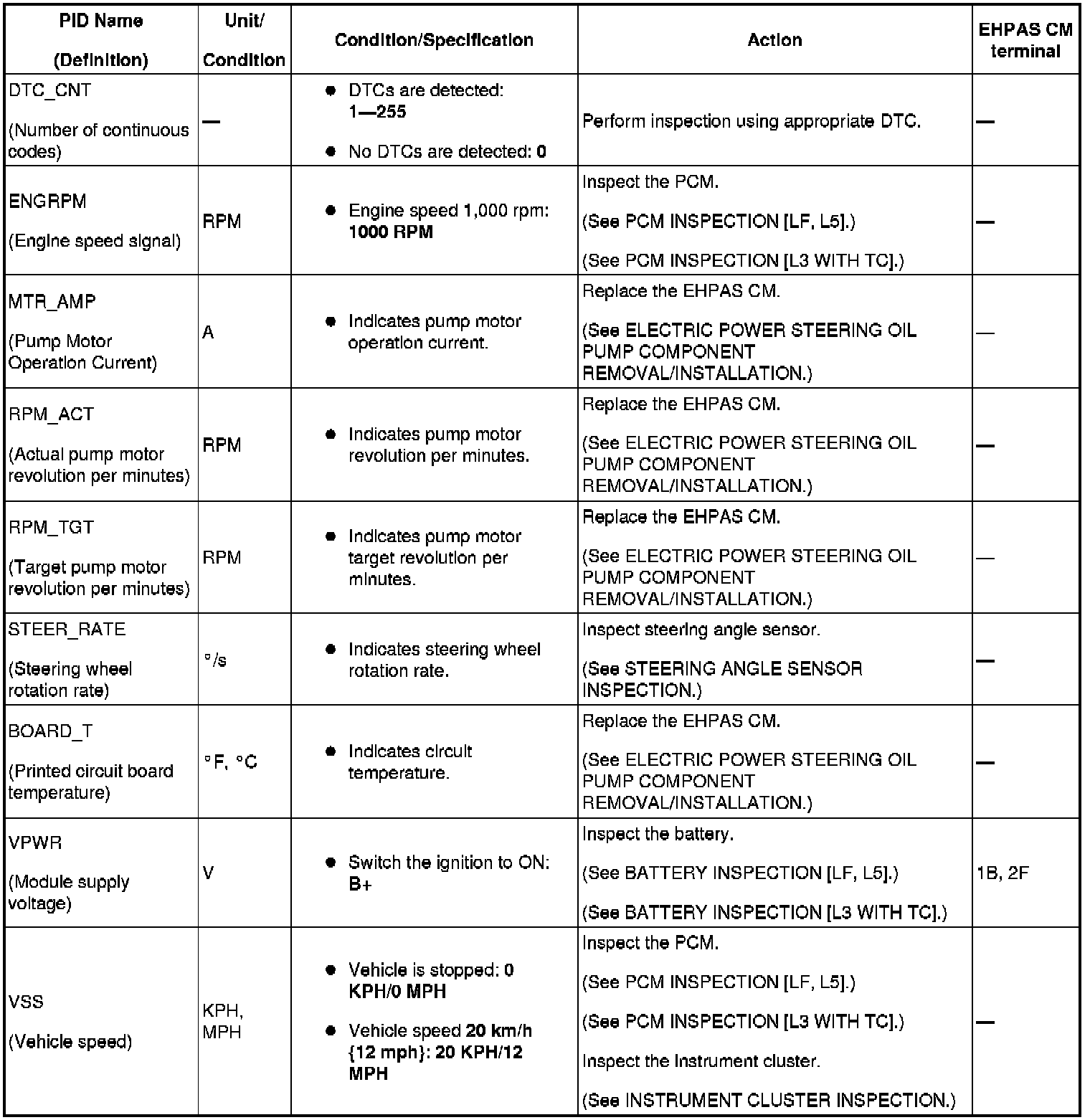 ELECTRO HYDRAULIC POWER ASSIST STEERING (EHPAS) ON-BOARD DIAGNOSIS