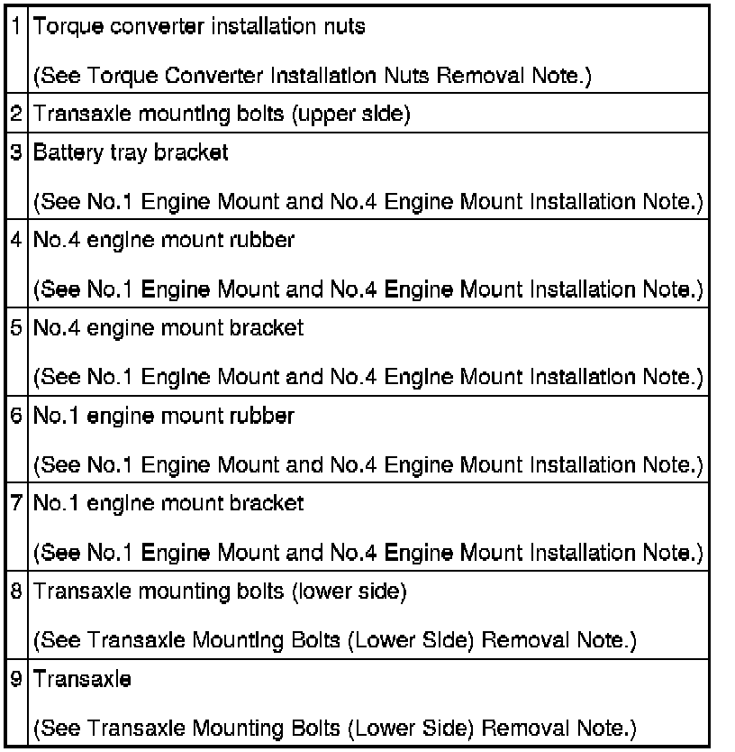 Transaxle Mounting Bolts (Lower Side) Removal Note