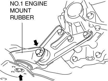 3. Install the No.1 engine mount rubber to the front crossmember, and then temporarily tighten the bolts.