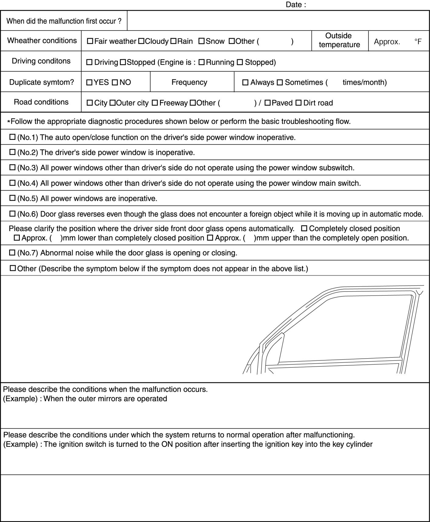 POWER WINDOW SYSTEM TROUBLESHOOTING QUESTIONNAIRE [POWER WINDOW SYSTEM]
