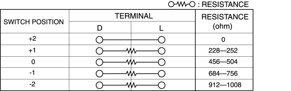 - If the continuity is not as indicated in the table, or if the resistance is not within the specification, replace the windshield wiper and washer switch.