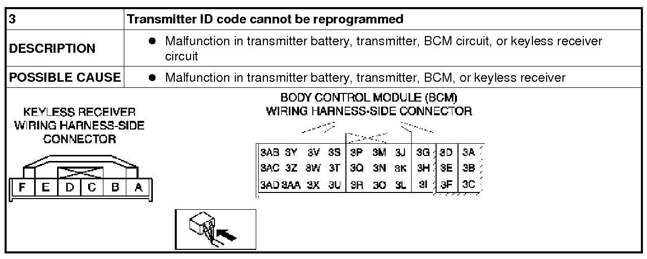 No.3 Transmitter ID Code Cannot Be Reprogrammed - Keyless Entry System
