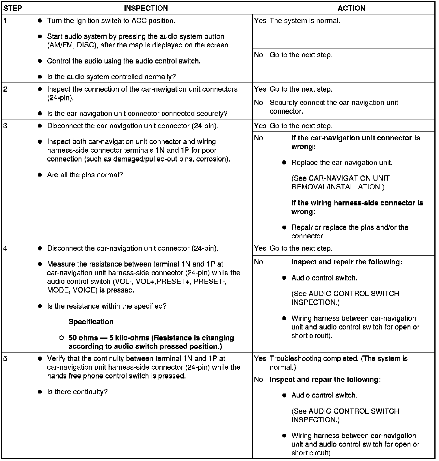No.2 System Does Not Control Audio By Audio Control Switch. - Car-Navigation System